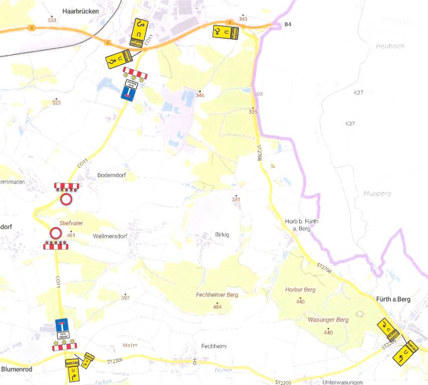 Grund sind Baumfällarbeiten. Die Umleitung wird über Fürth am Berg ausgeschildert.