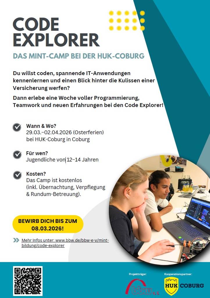 Versicherung werfen? Dann erlebe eine Woche voller Programmierung, Teamwork und neuen Erfahrungen bei Code Explorer!