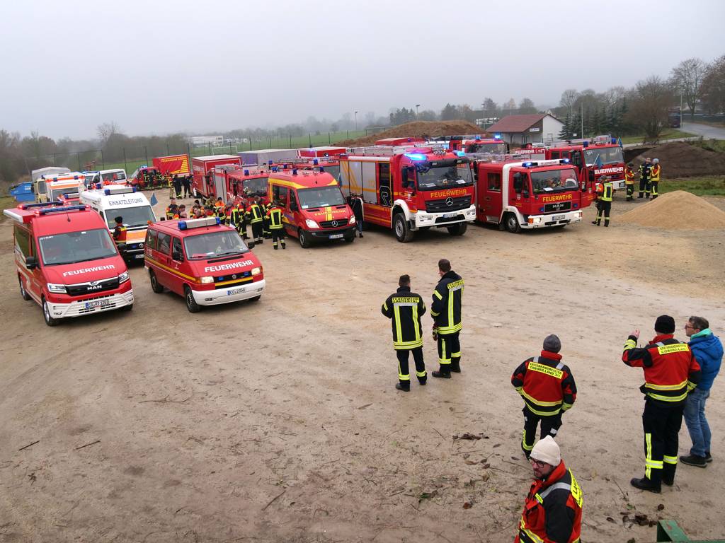 Bild: Das Hilfeleistungskontingent des Landkreises Coburg bei seinem Technischen Halt in Rattelsdorf.