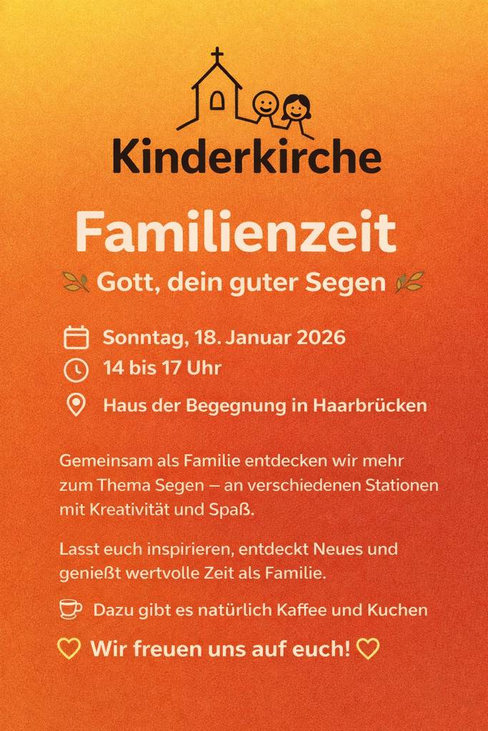 Herzliche Einladung zur nächsten Familienzeit der Kinderkirche 💛