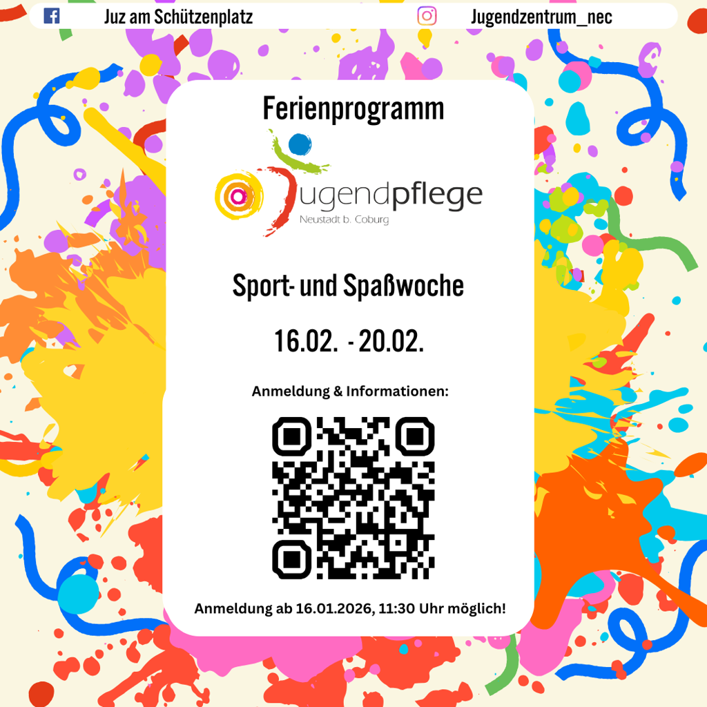 am Freitag, 16.01.2026 um 11:30 Uhr, ist es möglich das Ferienprogramm der Jugendpflege Neustadt bei Coburg zu buchen.