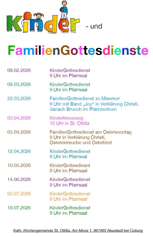 Kinder- und Familiengottesdienste der kath. Kirchengemeinde St. Ottilia in Neustadt
