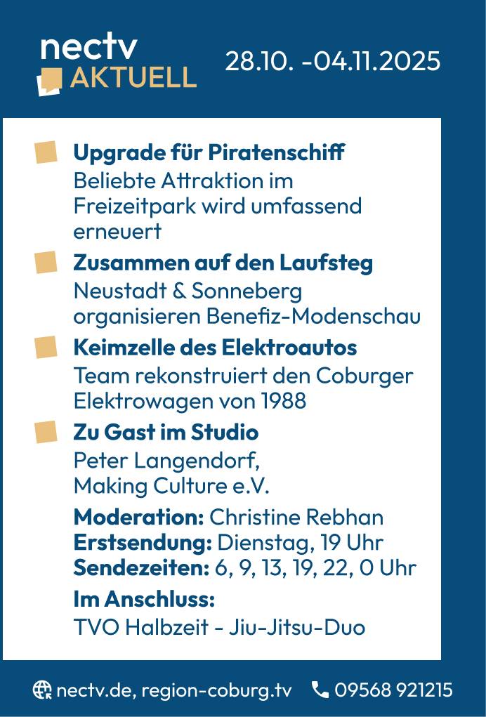 Das Piratenschiff ist eine beliebte Attraktion im Freizeitpark Villeneuve-sur-Lot und wird gerade umfassend saniert. Coburg ist eine Keimzelle der Elektromobilität: Ein Team aus Technikern und Historikern hat den Elektrowagen aus dem Jahr 1988 rekonstruiert.