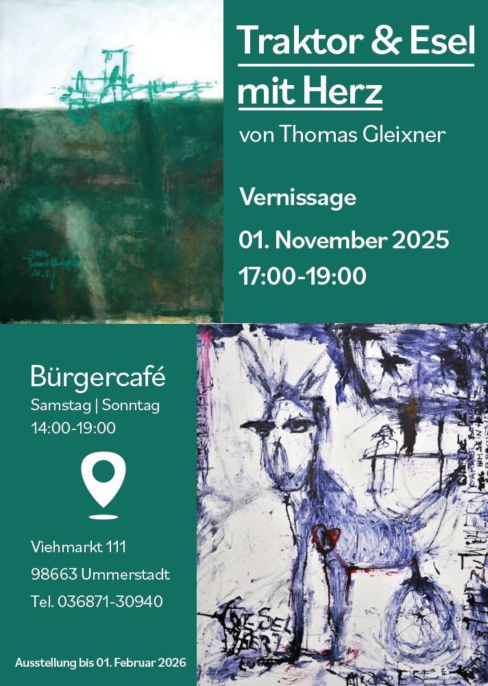 Bis 01.02.2026 jeweils Samstag + Sonntag, 14 – 19 Uhr im Bürgercafé Ummerstadt.