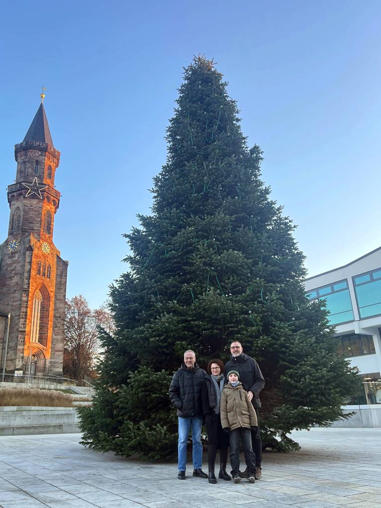 Oberbürgermeister Frank Rebhan bedankt sich sehr herzlich bei den diesjährigen Spendern, Familie Grosch aus Neustadt, für den wunderschönen Weihnachtsbaum für den Marktplatz.