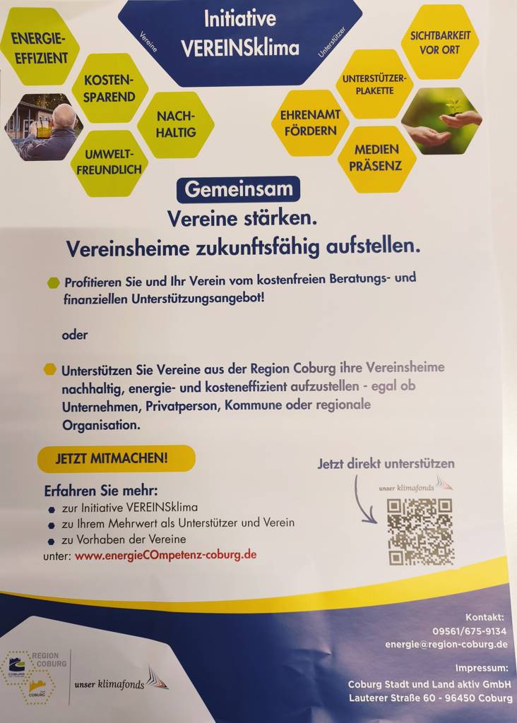 Mit dem Format VEREINSklima entsteht in der Region Coburg ein innovatives Unterstützungsprogramm, das Vereine dabei stärkt, ihre Gebäude und Außenanlagen zukunftsfähig zu gestalten – energieeffizient, klimafreundlich und resilient.