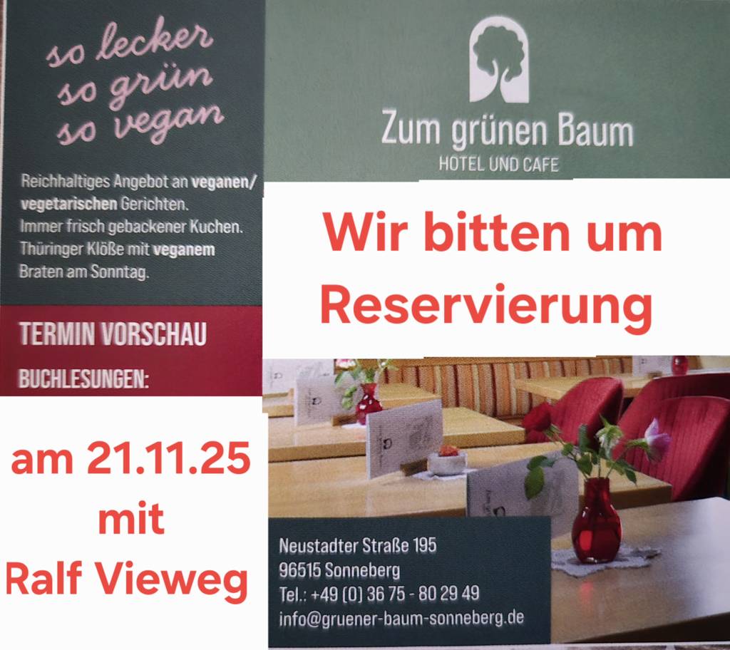 Wir bitten Sie um Reservierung unter Tel. 03675 802949.