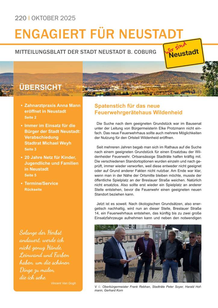 Hier stellen wir Ihnen das Mitteilungsblatt „Engagiert für Neustadt" der Stadt Neustadt b. Coburg monatsaktuell als Download zur Verfügung.