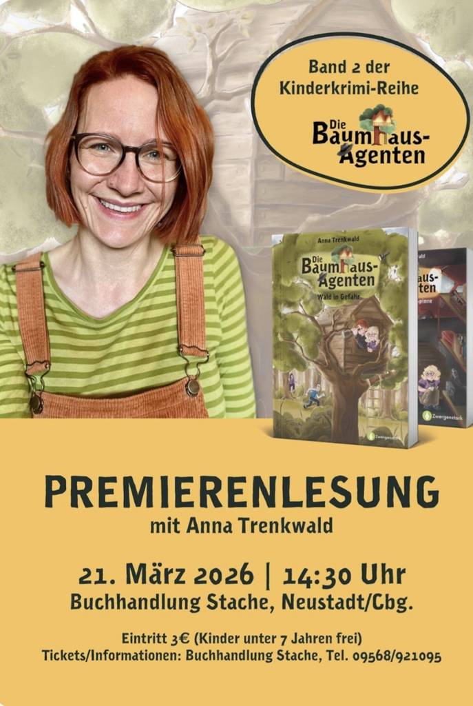 Die aus Neustadt stammende Autorin Anna Trenkwald führt am kommenden Samstag eine Autoren-Premierenlesung in der Buchhandlung Stache durch. Bei schönem Wetter findet die Veranstaltung im Garten (unter dem Baumhaus) oder im überdachten Freisitz statt.